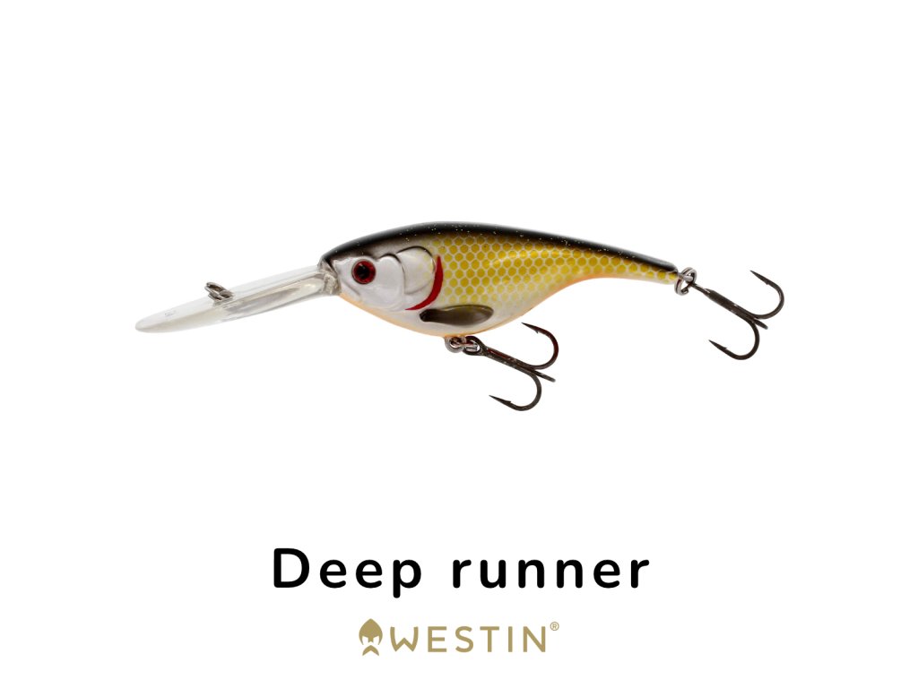 Globinsko delujoč Deep Runner crankbait. Nevtralno uravnotežen (suspending) – ko prenehate z navijanjem, ne tone proti dnu in se ne dvigne proti gladini.