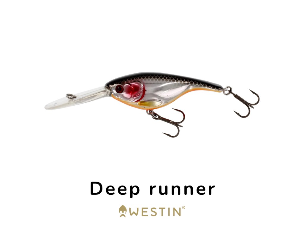 Globinsko delujoč Deep Runner crankbait. Nevtralno uravnotežen (suspending) – ko prenehate z navijanjem, ne tone proti dnu in se ne dvigne proti gladini.