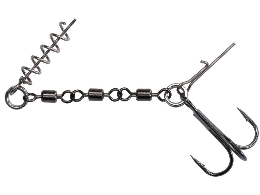 Ta stinger združuje navojni sistem s pritrdilnim pinom za popolno zavarovanje vabe. Uporaba sistema več vrtljivk ustvarja izjemno močno povezavo, ki prinaša dve ključni prednosti.