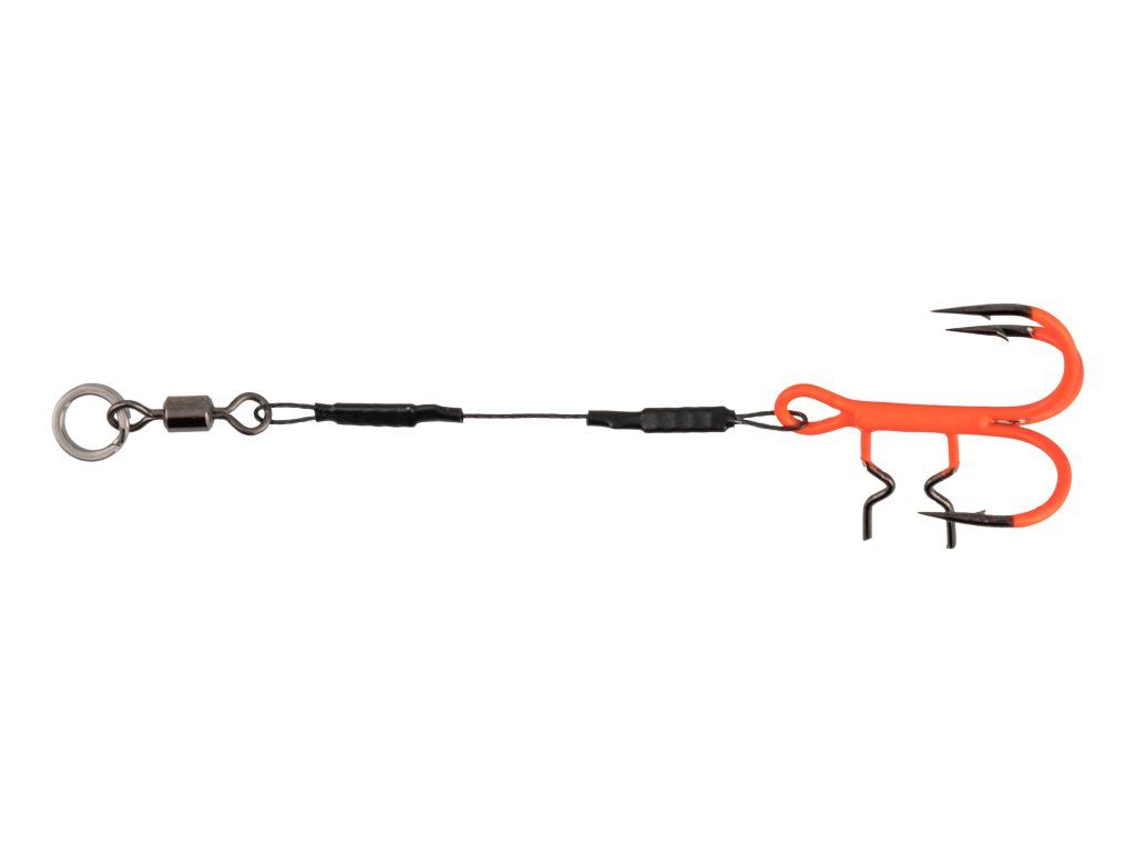 Ta stinger je izdelan iz prvovrstne japonske titanove žice in opremljen z ultra močnim, ostrim trojčkom v oranžni barvi. Je idealna izbira za ribolov z gumijastimi vabami.