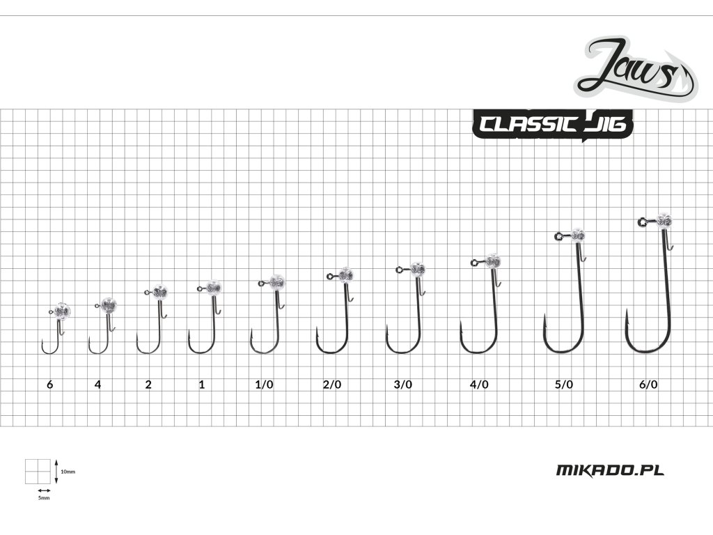 Klasične, a vendar vse prej kot običajne jig glave. Njihova glavna prednost so močni trnki in kompaktna oblika, ki odlično drži vabo, hkrati pa je ne poškoduje. Praktična podrobnost je tudi označba velikosti trnka neposredno na glavi.