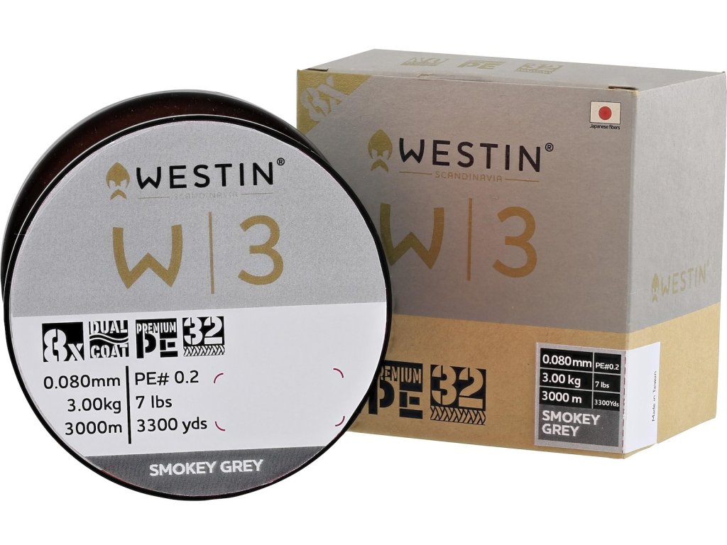 W3 Smokey Grey pletena vrvica podjetja Westin je izdelana iz vrhunskih japonskih UHMPE vlaken (Ultra High Molecular Polyethylene) z uporabo 8X zasnove. Konstrukcija s 32 prepleti na palec zagotavlja bolj gladko površino in povečano odpornost proti obrabi.