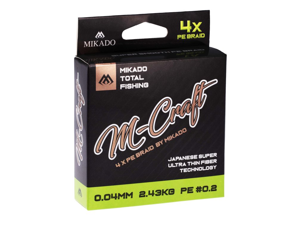 Pletena vrvica M‑Craft je izjemno tanka pletena vrvica, izdelana iz japonskih PE vlaken. Namenjena je najfinejšim spinning tehnikam in predstavlja idealno izbiro za ribiče, ki lovijo ostriže, klene in postrvi. Odlikujeta jo odlična občutljivost ter natančen prenos prijema, zato je popolna za lahke vabe in precizno prezentacijo. Na voljo je v dveh barvah – svetlo zeleni in sivi.